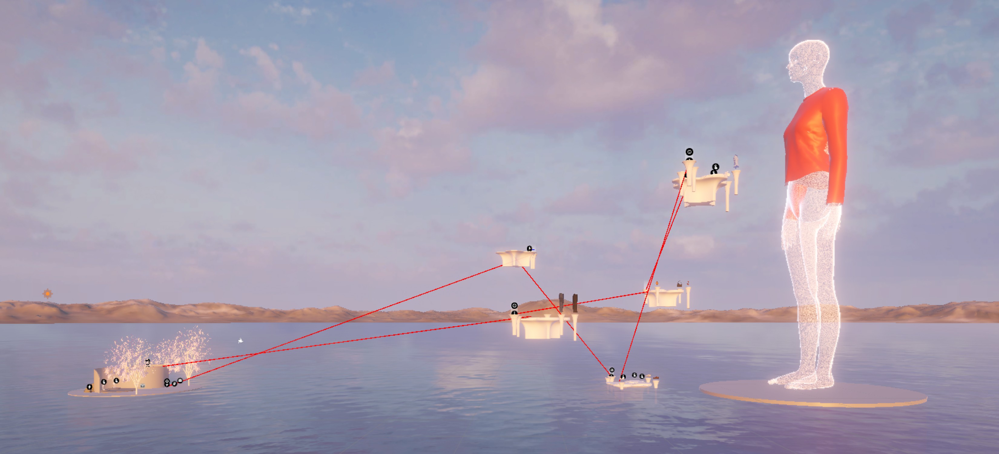 The surreal setting, surrounded by a tranquil sunset sea, enhanced the focus on the garments. Floating islands held the outfits and encouraged exploration through a quest-based system, adding engagement and a sense of progression.