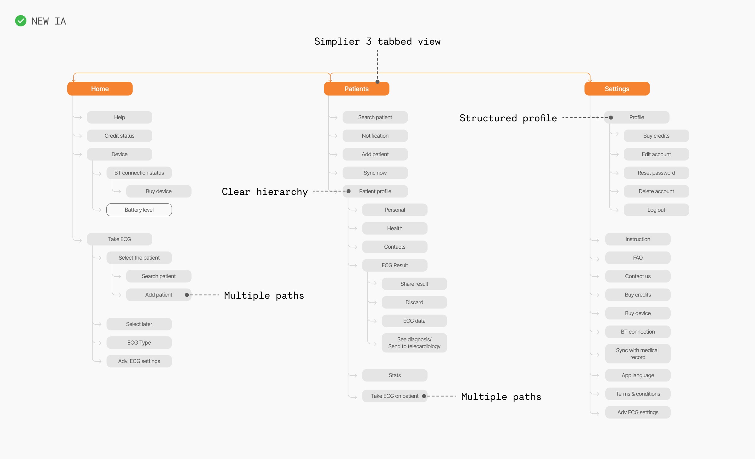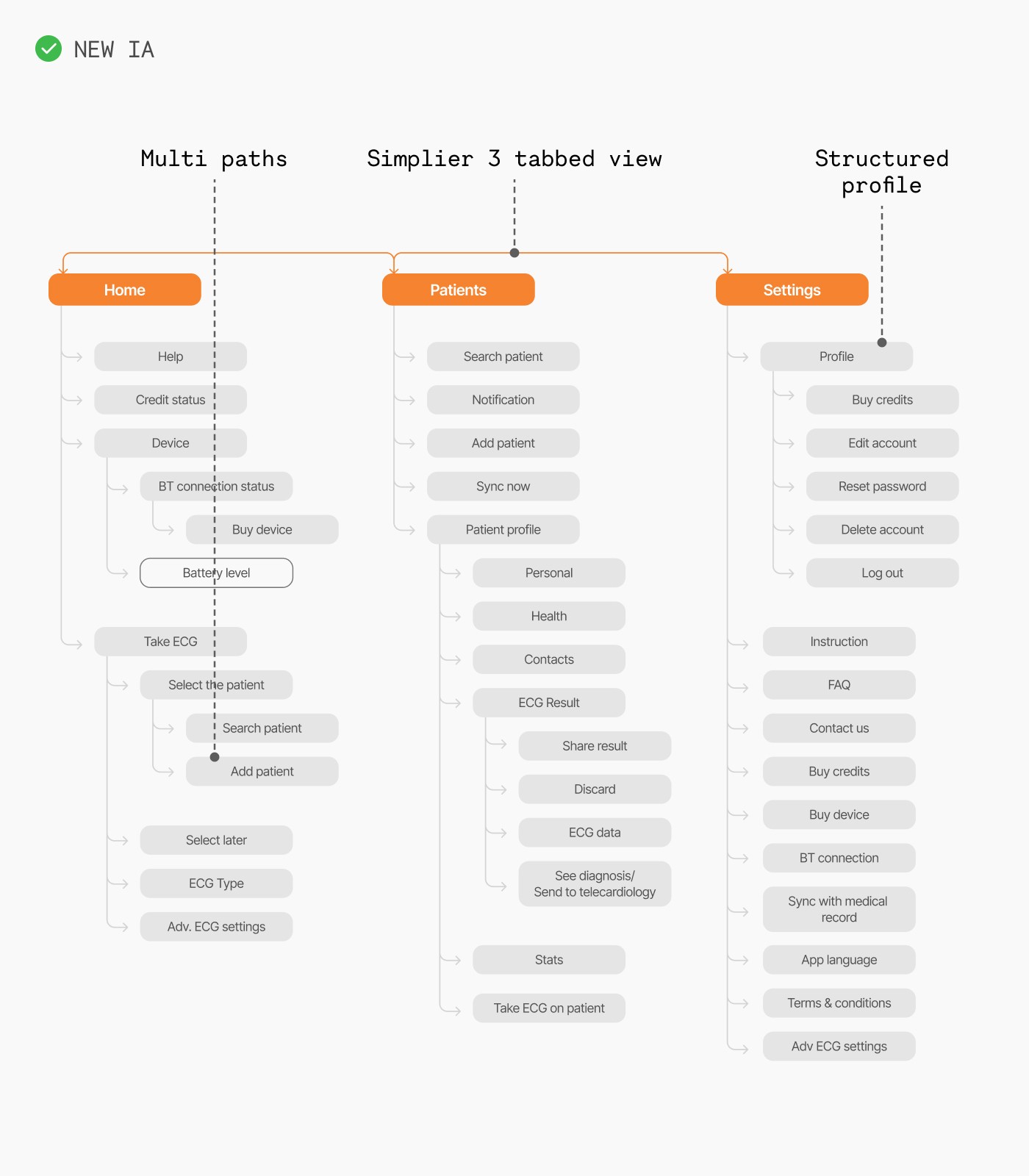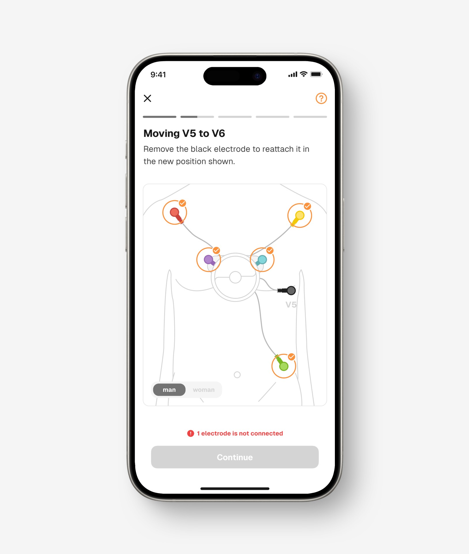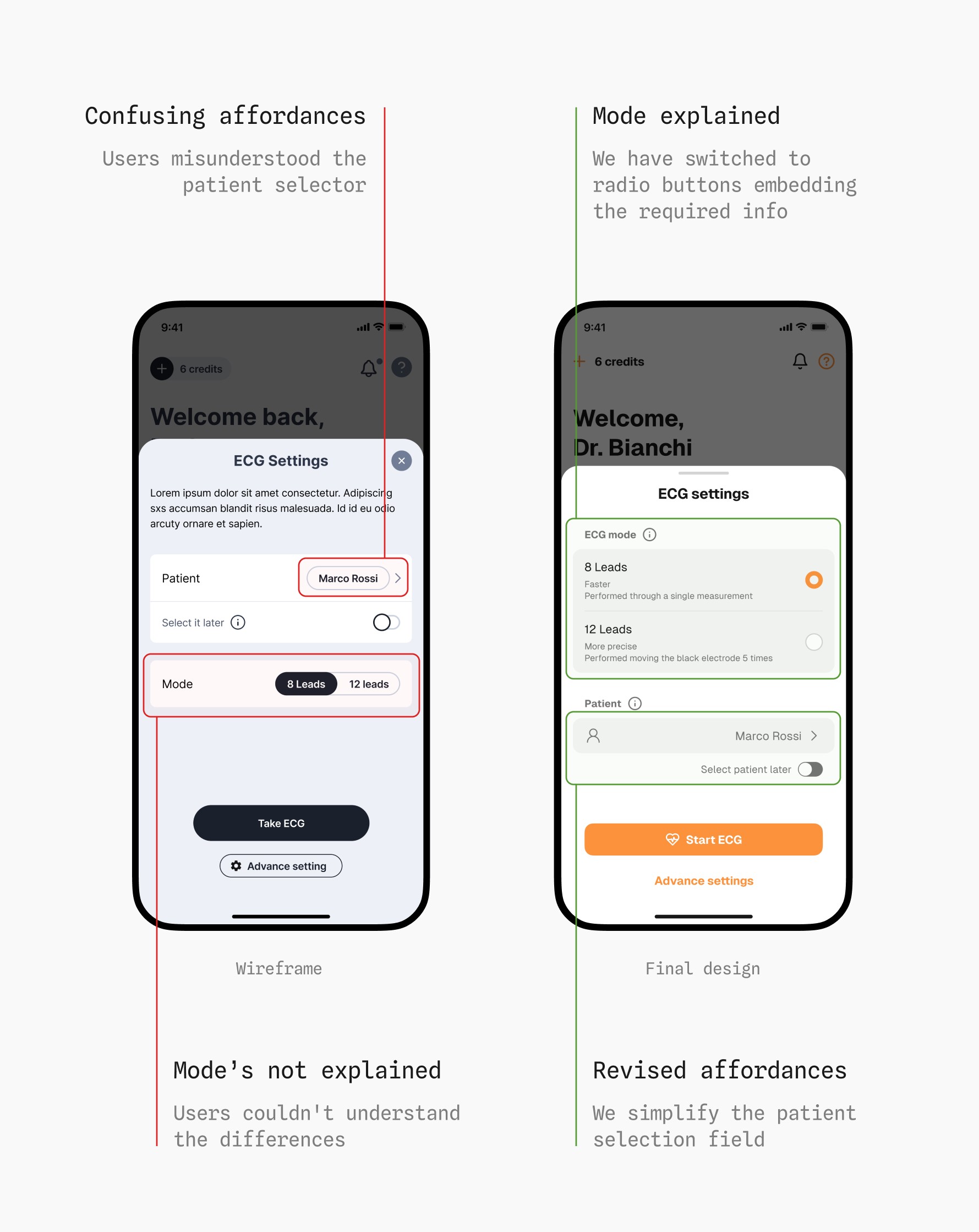 The ECG recording flow was the most complex. With electrode placement involving repeated interactions, we had to carefully organize information to avoid cognitive overload.