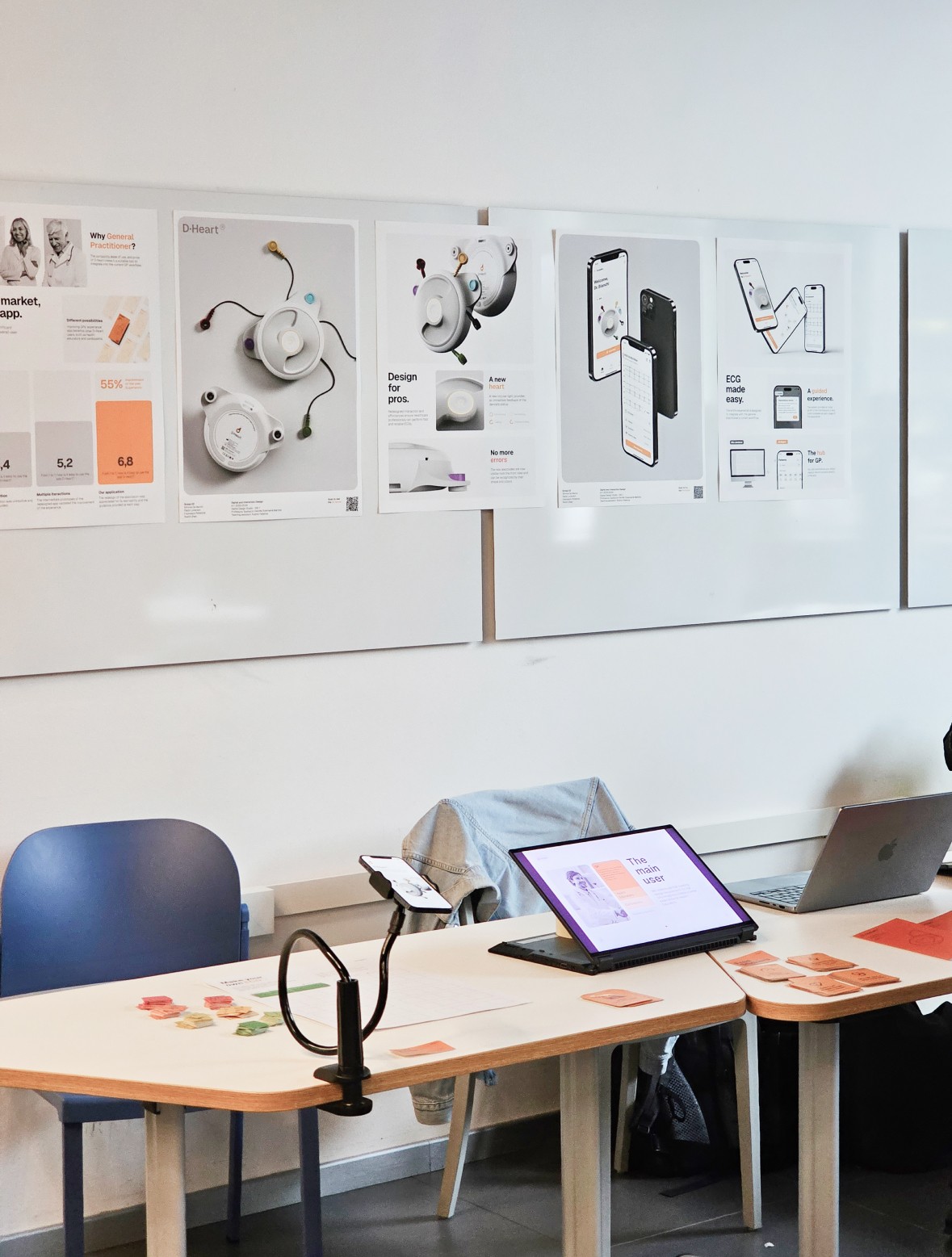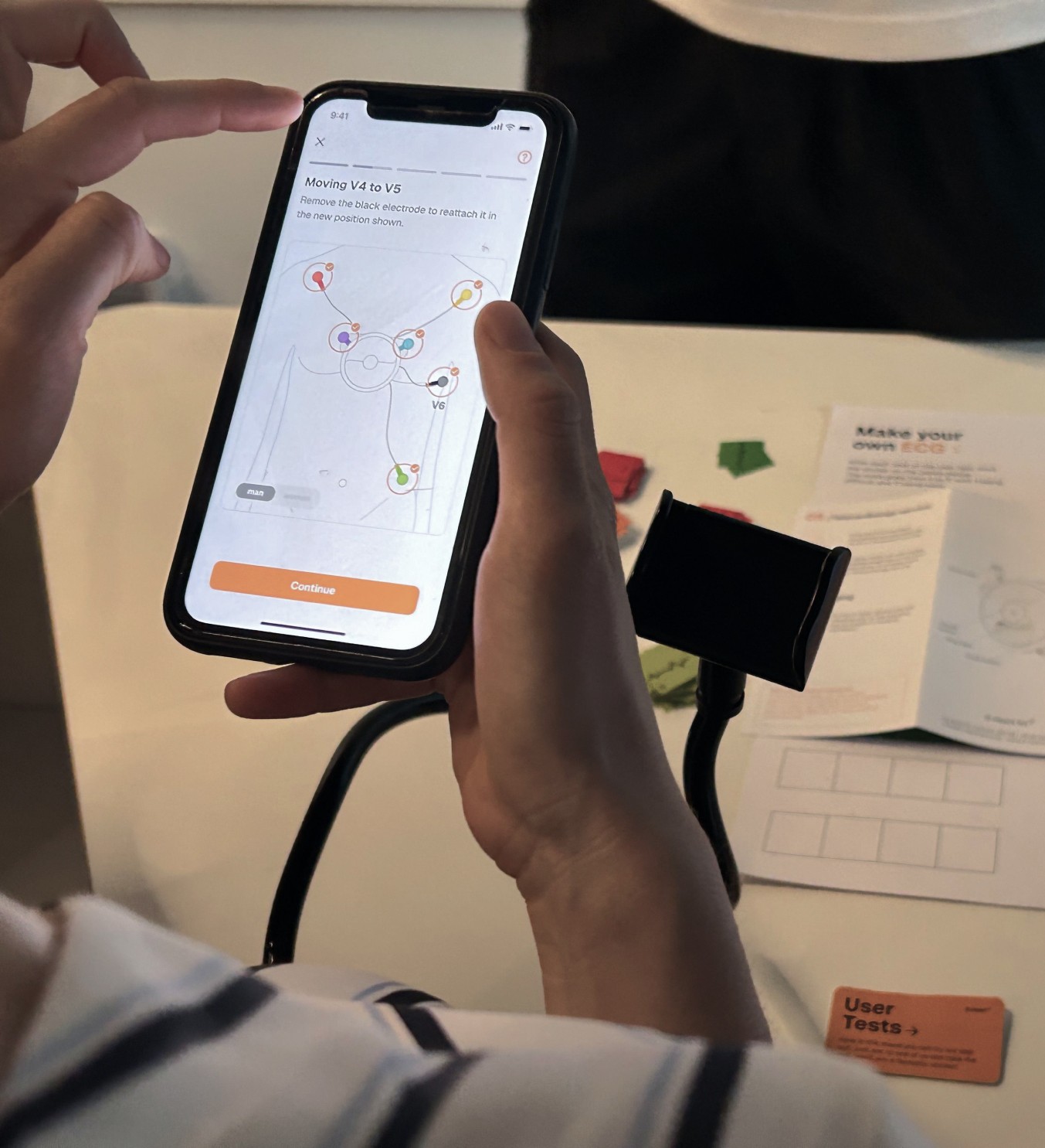 The tests covered five key tasks, from onboarding to ECG recording, with a facilitator guiding participants and two note takers capturing feedback and implicit behaviours. In addition to qualitative insights, we used quantitative methods to measure the user experience.