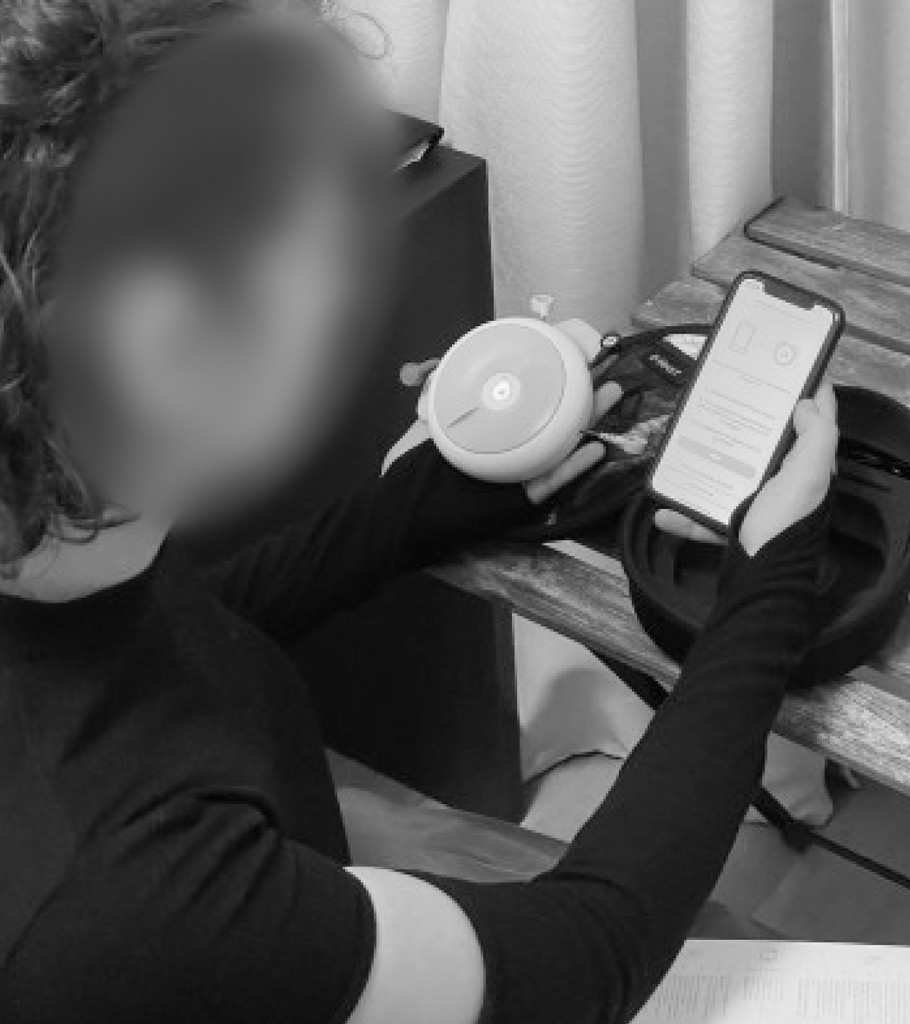 The final redesign, covering both the app and the device, was developed around the four key research-driven requirements.