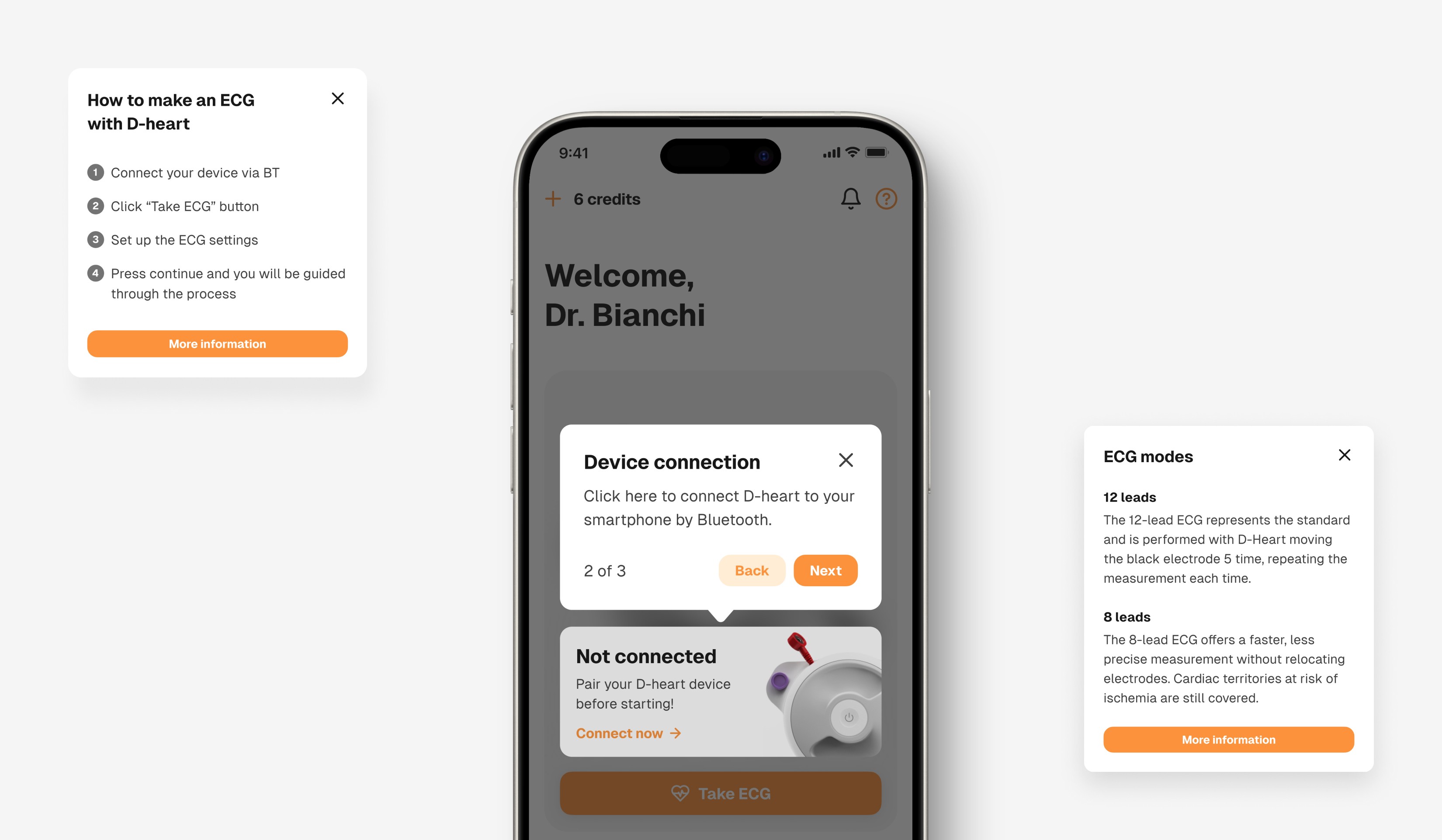 Every design decision is focused on improving usability, providing a guided, step-by-step workflow with clear feedback and instant access to essential information, ensuring doctors can quickly and confidently achieve reliable ECG results.